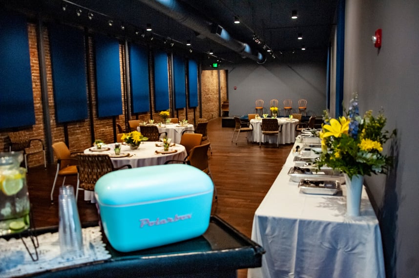 The Ritz Studio is a perfect space for smaller parties, showers, cabarets, etc. This space can seat 75 or accomodate up to 100 standing.
